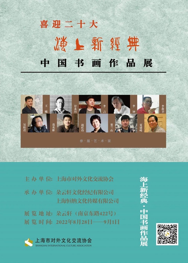 為迎接黨的二十大的勝利召開, 8月28日至9月1日,由上海市對外文化交流協會主辦的“喜迎二十大——海上新經典·中國書畫作品展”在朵云軒(南京東路422號)舉辦。