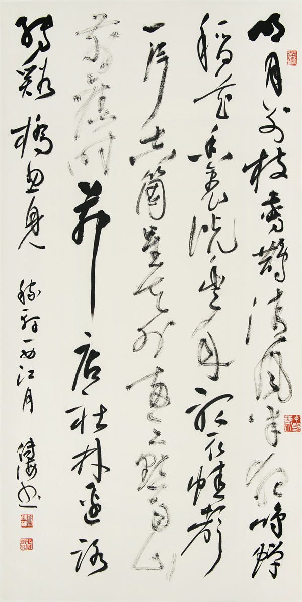 《斷舍離》:斷舍離是一種生活理念,人只有廢棄多余東西才能活得自由而清爽。在書法上要遠(yuǎn)離時風(fēng)斷舍名利,眷戀經(jīng)典方能進(jìn)步。傳海 138×57cm