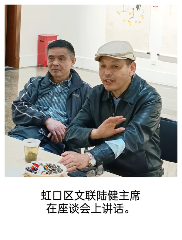 由于受疫情管控,不舉辦開幕式,下午兩點鐘,作品的研討會準時開始,虹口區文聯主席陸健首先講話,參加研討會的有余仁杰、解宇、顧孝華、吳建民、張潔、卞真、張喬榮、翁國樑、陳大健、薛春華、葉更森、華靜、馬星培、周銀耕、孫健忠、劉鑫、王海頻、李新衛和杜永平等,夏建峰主持了研討會。這次畫展為廣大市民提供了在藝術、生活、文化、視覺的一次交流與拓展,豐富了市民在文化生活中的又一次呈現。