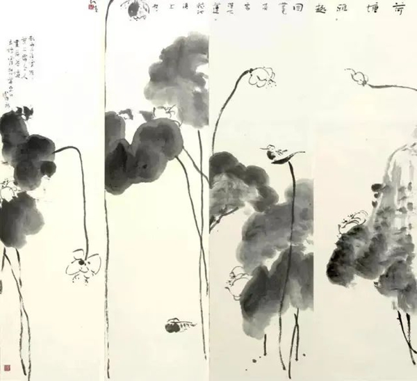 細數近代畫荷名家,張大千追求荷韻,清新優美、揮灑如意;齊白石追求荷趣,天真爛漫、不似而似;潘天壽追求荷骨,霸悍頑強、崢嶸不屈;于非闇追求荷色,形象逼肖、妍麗精巧。余仁杰畫荷似乎有意避開諸上名家,而獨取元明之空靈悠遠,徐渭、朱耷的影響尤為深刻。用盧金德的話來說,就是“余仁杰的中國畫在大寫的酣暢中很使畫面有一種蔚霞的張力”。