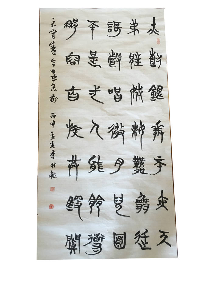 其書作嚴謹古樸、厚重雄健有序、委婉柔韌,寒暑無間,終年臨池不輟。作品舒展流暢、雍容大度,墨緣意趣中求神韻,灑脫中求飄逸。