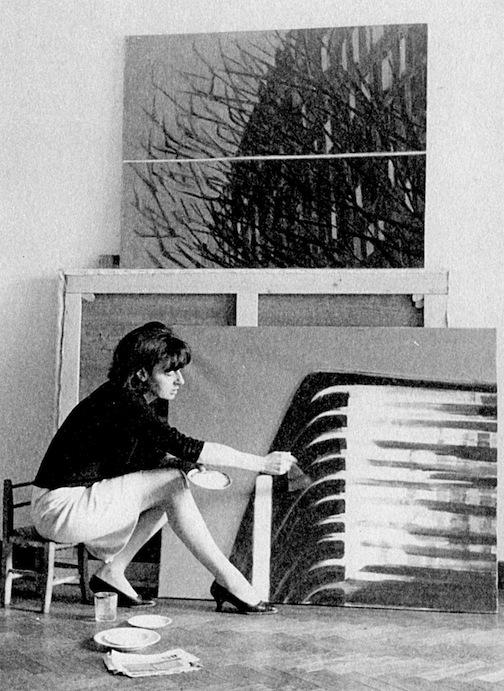 所以,崇拜完成之作和完美形式的古人們不喜歡展示藝術的廚房就不怎么奇怪了。相反,現代人,從浪漫派到達達,都把創造過程對于作品的無上權力理論化了,只要有可能,他們就暴露這一創造的物質條件,并喜歡在其畫室里表現自己。進入蒂蒂娜(Titina Maselli)畫室的人很快就注意到,在這里,畫室和居所的分界線是難以察覺的。確實,人們甚至不能在其專有的意義上談論一間畫室。它,根據情況,和客廳或飯廳重合。看著墻上掛著或地上擺著的一些畫布,我們才意識到自己進入了一個模棱兩可的場所。1988年卡夫里戈亞展覽目錄開頭的一張照片展示了羅馬畫室中的藝術家。蒂蒂娜坐在一張巨大的白色手扶椅上,正在打電話:除了這地方的熟人外,沒有人會想到這是間畫室。如同古代畫家,蒂蒂娜沒有畫室,也不展示創造過程的印跡。從中,這位如此現代的畫家找回了一種古典的傲慢,一種最終了無痕跡的姿勢。