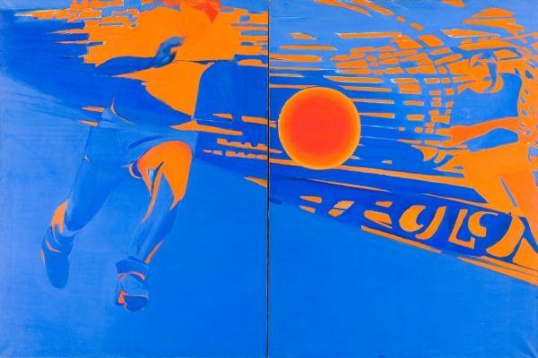 “對于現象的展開所耗的時間,須懂得呈現其動態的力量。顯現通過運動突然發生。”人們在畫家的一則狂熱的筆記里讀到這段話。批評家往往對蒂蒂娜的激烈圖像學留下深刻印象,后者再現了以摩天大樓為基底正在比賽的足球運動員或拳擊手,或再現了一列列全速穿梭的地鐵。我不認為強調這些圖像的寫實性或抽象性有什么意義,更不用說其關于都市生活的隱喻本質了。如果這些競技者是某種東西的寓意,那么,它會是繪畫的潛能本身,而蒂蒂娜試圖從中捕獲的運動就是那種把繪畫從潛能引向實現的運動,是那種從巨林(sylvaingens)里提取形式并將之全部納入潛能的姿態。