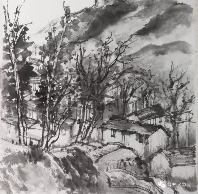他的小品每一幀都是太行山中的實地寫生,以我對太行山的熟悉程度,卻不太容易看出太行山的標志性形象符號,因為他本質上是借太行山在捕捉他內心的山川之美,他目中見小山水,心中念大山川。他的畫面給我一種苦澀感,很難形容,是由枯筆和水墨形成的直覺感受,枯筆在紙面若有若無的游離,對形象的細節刻畫是不太顧及的,他在畫面中進進出出,所想表達的是畫面本身的結構形式之美,而這種美因為他線條的個性使然和水墨的天然基調,隱隱約約透露著一種苦澀感,當你直面他的畫面之時,我想這一點是可以感受的??酀且环N美,且可能是一種更高級的美,這大概是每一位成熟的欣賞者都不太敢于否定的藝術哲理吧。