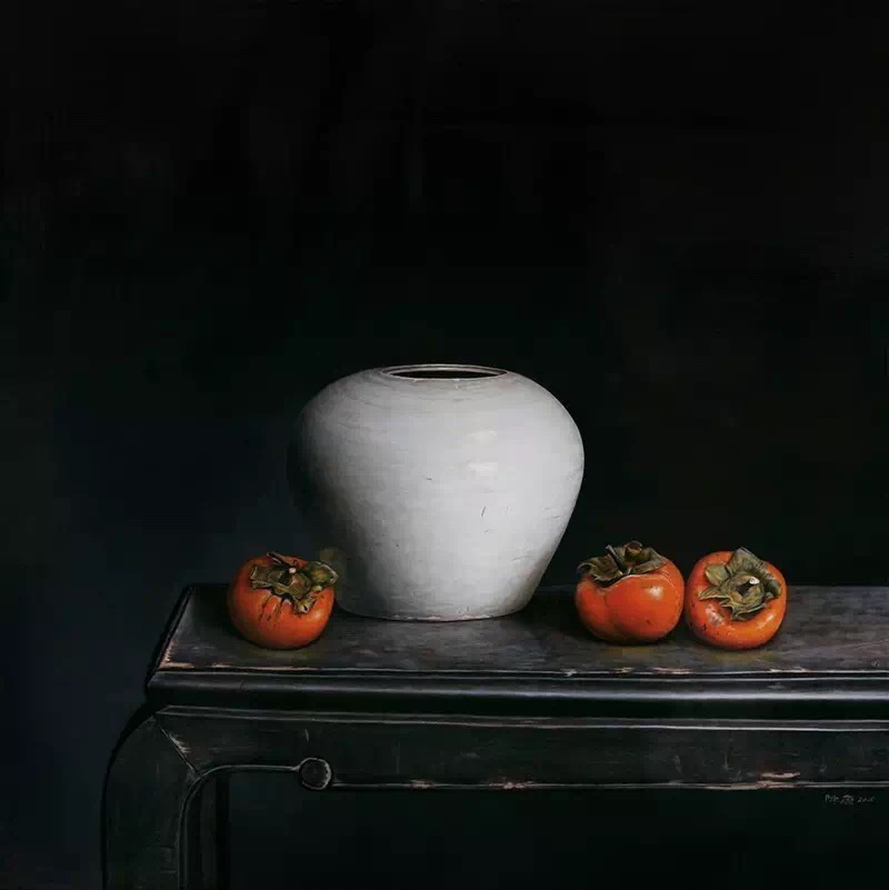 陳唐 《瓷罐與柿子》 布面油畫 50x50cm
