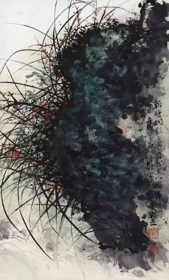 黃胄筆下的蘭花,如其擅長的人物畫與動物畫一樣,線條流暢有力,墨色通透多變,幽蘭在他筆下多了一些奔放自然的味道。