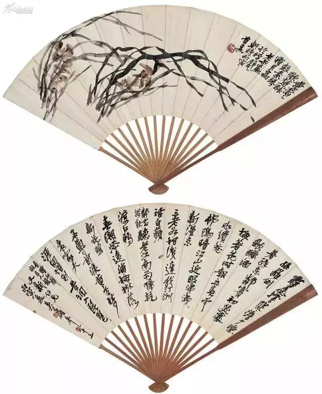 吳昌碩畫蘭,由于他書法、篆刻功底深厚,他把書法、篆刻的行筆、運刀及章法、體勢融入繪畫,喜以或濃或淡的墨色和用篆書筆法畫成,剛勁有力。