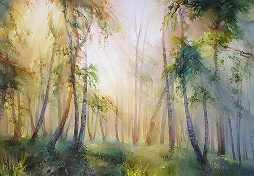 波蘭藝術家瑪爾格札塔?什切欽斯卡是水彩畫畫家。她的畫風輕柔,她創作就像在傾訴自身對自然之美的禮贊。她體悟了森林、微風、綠草、花叢、光線和色彩的融合,并用畫筆將其描繪出來。