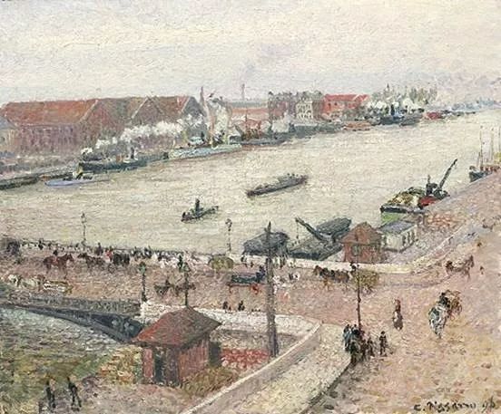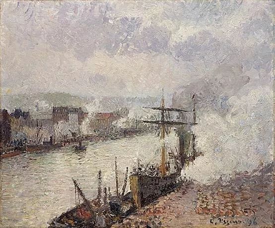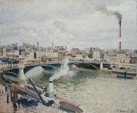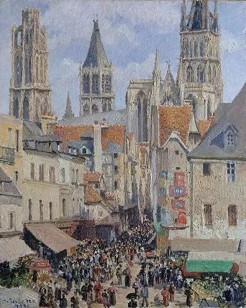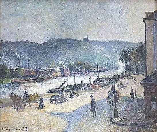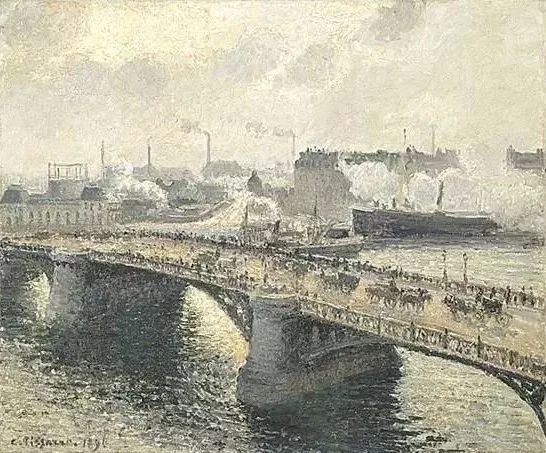 最后,他還是舍棄了與他志趣不相投合的點(diǎn)描主義,又重新按照自己的方式來(lái)作畫;然而,畢莎羅除了一直為拮據(jù)的經(jīng)濟(jì)所困外,又因患有眼疾,使他不能露天作畫,但這些困擾并未阻撓他繪畫的意愿,于是他改在畫室中工作,并且經(jīng)常到盧昂、巴黎、第厄普和勒哈佛等地方小住,并且從他居住公寓的窗口或從旅館的房間,來(lái)描繪城市風(fēng)光。