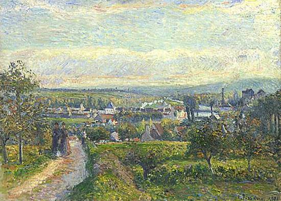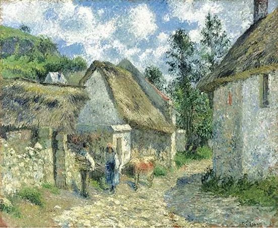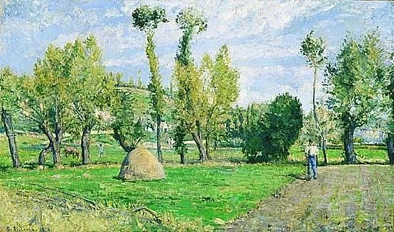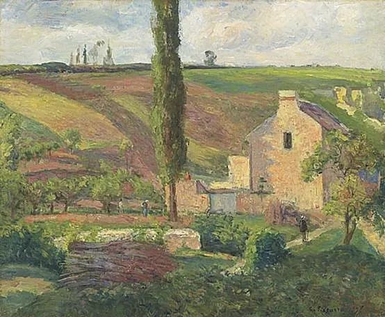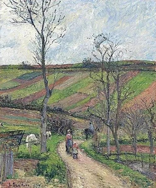 畢莎羅與其它印象畫家不同的是,他不沉迷于云光倒影,水霧迷離的表現(xiàn),而是把對(duì)生活的深刻信念,與法國(guó)傳統(tǒng)的鄉(xiāng)村文化融入畫作中,專心致力于描繪土地與鄉(xiāng)村,充份表現(xiàn)出對(duì)自然界親切而深厚的情感。60歲后的他,生活有所改善,但是因腿疾而不能行走,就天天在窗邊作畫,直到病逝。