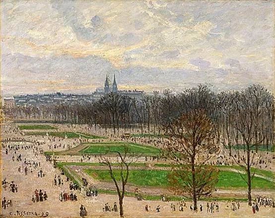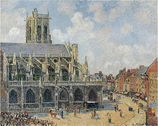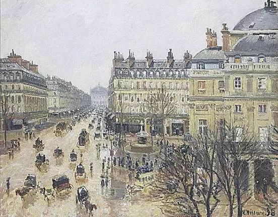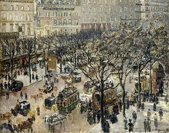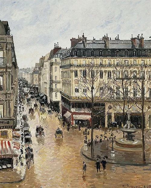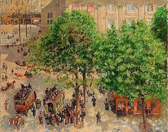 畢莎羅晚年排除了外界畫法對(duì)他的干擾,表現(xiàn)出一個(gè)充滿自信的印象派的元老畫家的精湛技巧和恢宏氣魄,后期主要描繪繁華的城市和街道建筑,多取俯視角度,他更多是從樓上居室俯視描繪街景。