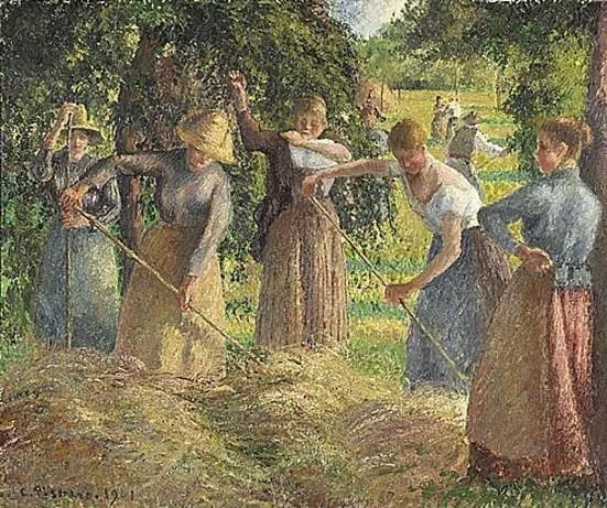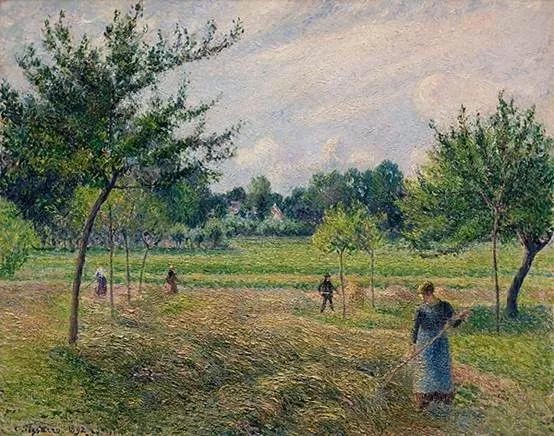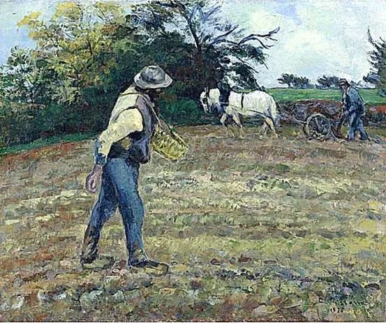 有人曾向竇加問(wèn)起米勒和畢莎羅,他回答:“米勒嘛?是的,他的《播種者》確實(shí)是在為人類播種;而畢莎羅筆下的農(nóng)民都是為了給自己掙面包而勤于勞動(dòng)。” 畢莎羅對(duì)形態(tài)與技法進(jìn)行了仔細(xì)的研究,成功地取得了他那充滿恬靜氣息的畫面。