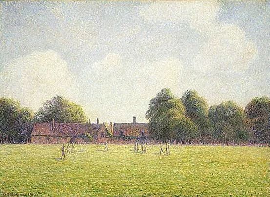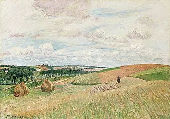 畫中看到的既有柯洛影子,但更多的是畢莎羅自己的清新的空氣、明媚的陽(yáng)光、柔和深遠(yuǎn)的云天,給人的時(shí)空和色彩的感覺妙極了,這種印象的真實(shí)感能喚起每個(gè)人如同身臨其境的回憶。