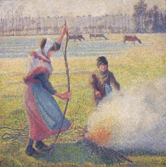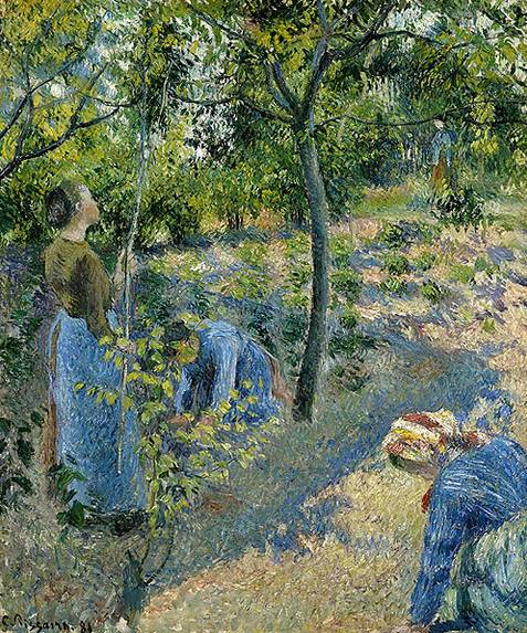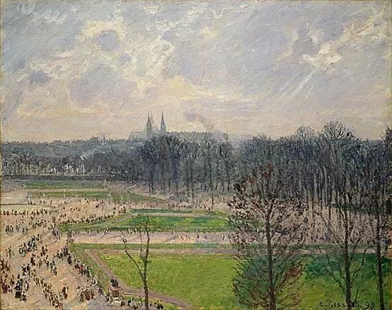畢莎羅放棄了固有色的觀念,以補(bǔ)色體現(xiàn)景物的明暗變化,用原色做適當(dāng)調(diào)整。以細(xì)碎的筆觸體現(xiàn)光的顫動(dòng),造成模模糊糊的形象。