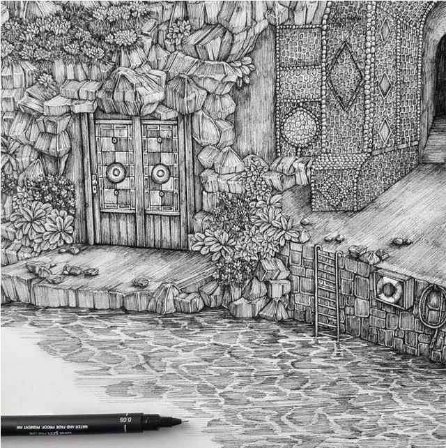 “我創作不同的場景,同時也是一個重塑與再建造的過程”Kemp解釋到:“我所建立的世界和虛幻場景是在我所認知的世界基礎上發展演變而成的。這里涵蓋了大量我所能察覺到的細節,土地、石子、草叢、磚石,甚至可能存在的生物。”