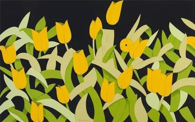 卡茨著名的作品《黃色郁金香》(2014,版畫,122 x 196 cm)