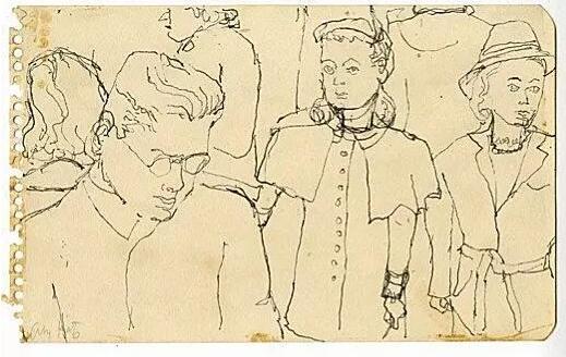 Alex Katz, Crowd on Subway, c.1940s, Pen, 12.4 x 20cm, (1187)