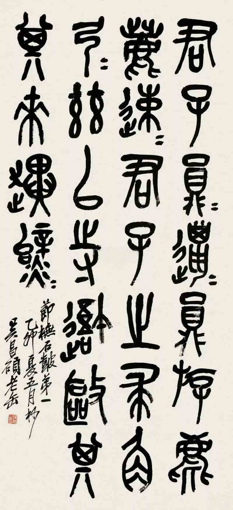 這種字,也就是吳昌碩及后來的齊白石剛好能駕馭,換了別人,馬上流入粗野之中。看來這份野逸,也不是誰都能玩得了的。沒有高尚的修為不靈。