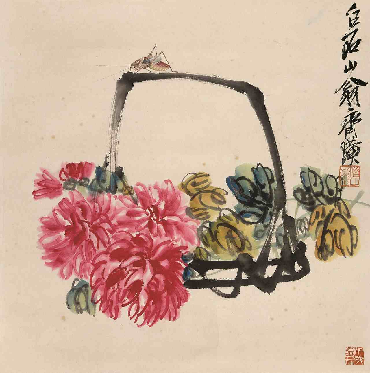 吳昌碩寫意花卉,師法徐渭、八大山人、趙之謙等諸家之長,兼用篆、隸、行草等書法筆意入畫,色酣墨飽,雄健古拙,亦創(chuàng)新貌,形成了富有金石味的獨特畫風(fēng)。