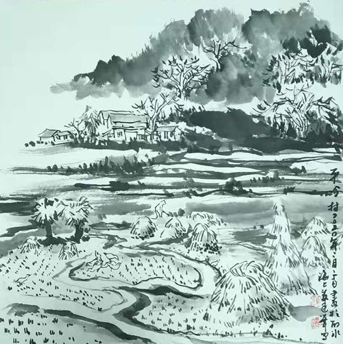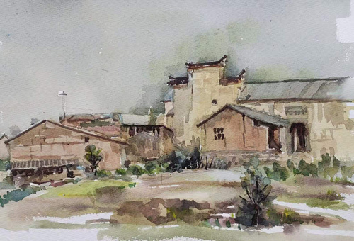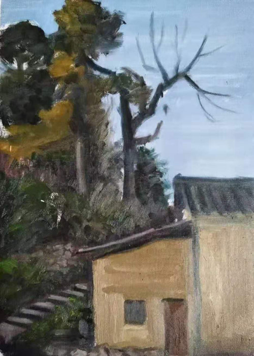 夏建峰寫生作品《平嶺村頭》50×50cm