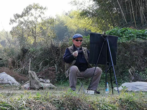 建峰相識經年,老鄉加畫友。上海開著體面的印刷廠,畫著畫辦著展,一有空便來麗水寫生,畫鄉“交關靈”的綠水青山讓他樂此不疲。前幾天和國強老師領了滬上二十余位資深加著名的畫家往畫鄉殺奔而來……
