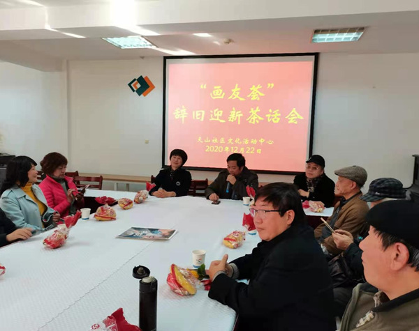 2020年12月22日下午二時畫友薈創作沙龍在天山街道文化活動中心舉行“畫友薈辭舊迎新茶話會”。