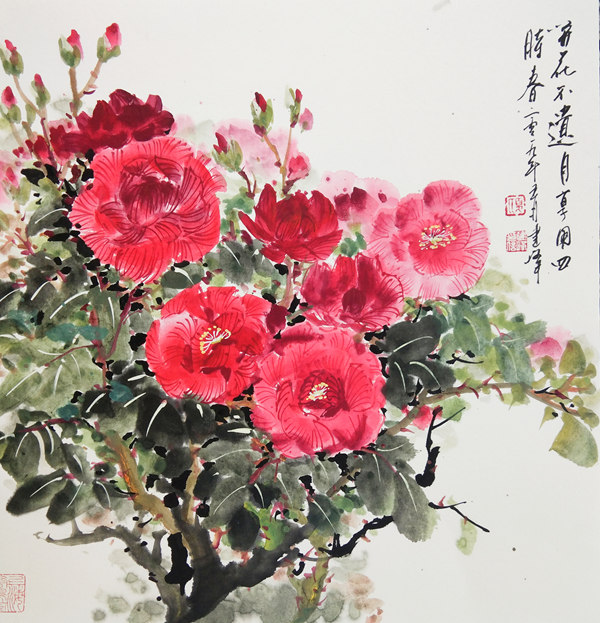 作品“菜花韻”入選第七界上海美術大展,作品“四月國花”入選2017全國中國畫大展