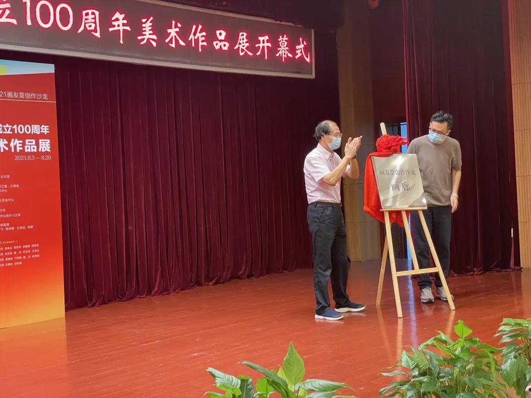 熊友飛館長和“畫友薈”主持武國強揭牌