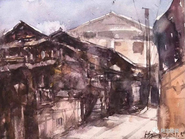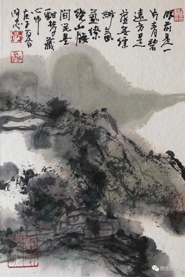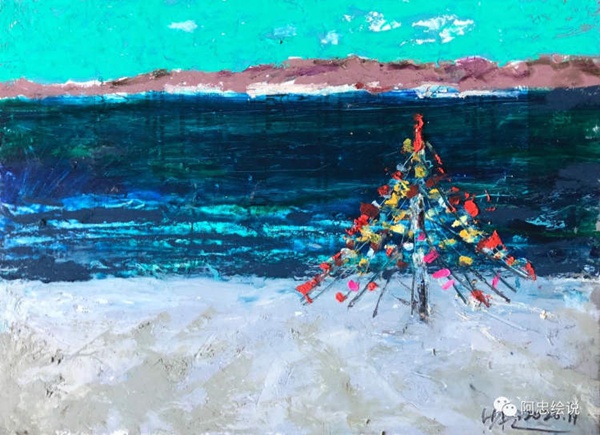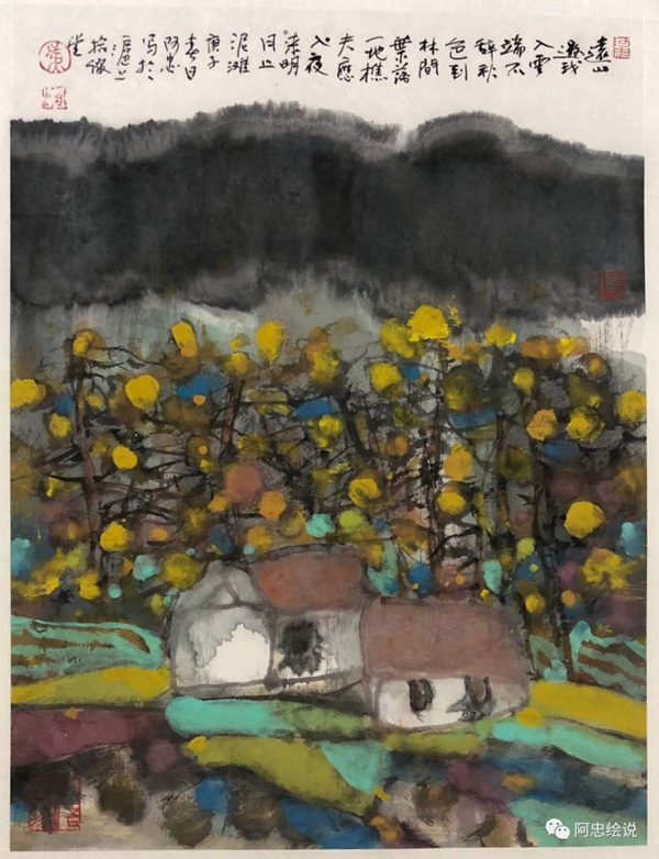 這里我們選兩首黃阿忠的現(xiàn)代詩和配套繪畫作品來欣賞一下。