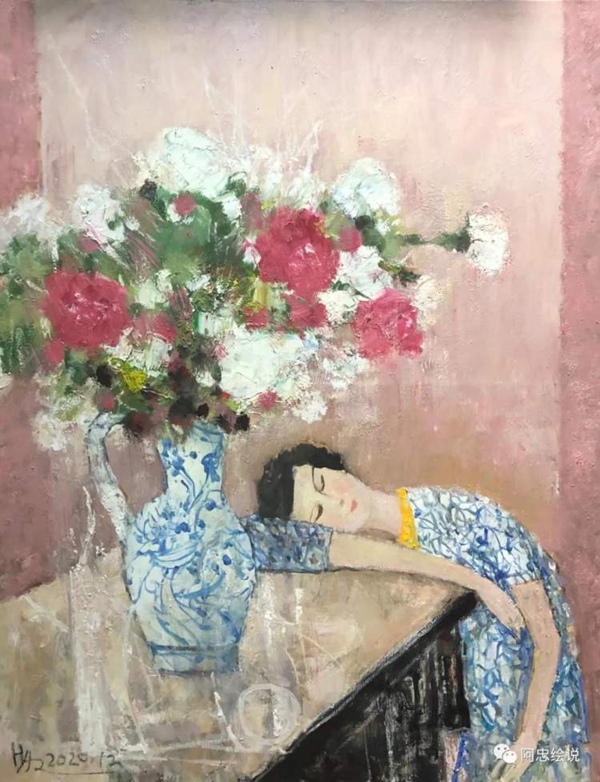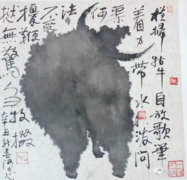 在“阿忠繪說”公眾號里,黃阿忠經(jīng)常把自己的繪畫和現(xiàn)代詩一起配發(fā)。古代文人最推崇的“詩書畫印”四絕全才,在黃阿忠這里,變成了中西藝術(shù)文化全面打通的融合型藝術(shù)大家。